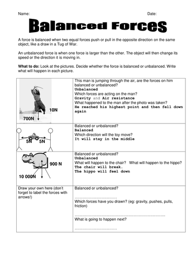 Balanced And Unbalanced Forces Worksheet : Balanced Forces worksheet | Teaching Resources : Force for kids worksheet part 1 students will identify push or pull part 2 students will write the effects of force part 3 students will play a word puzzle to find the answers and fill in the blanks.. I begin today's lesson before students even realize the lesson has begun. The object may slow down. You'll hear the terms , balanced forces and unbalanced forces a lot when you're dealing with physics and what i wanna do in this video is give you a bunch of scenarios and have you think about whether the forces in these. The overall force acting on the object is called the resultant force. Explain that we are going to be learning about balanced and unbalanced forces.